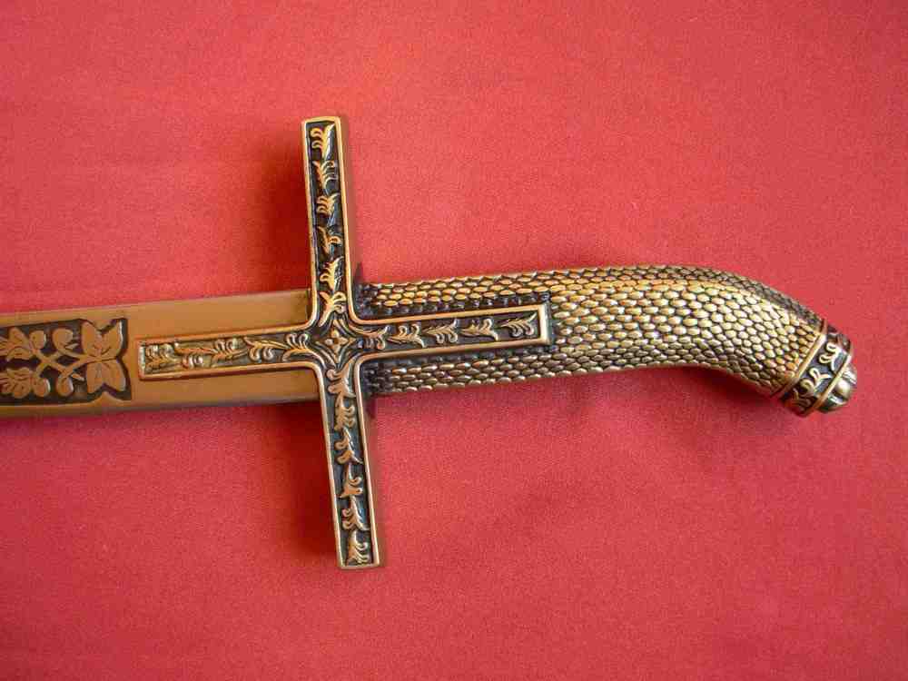 Der polnische Säbel des sog. "Sobieski Adlers " vom XVII Jahrhundert. Der Griff aus gegossenem Messing bildet eine Gesamtheit. Der Kopf des Griffe ist in Form des gestalteten Kopfes des Adlers, der die mit dem Arm des Korbes verbundene Kette in dem Schnabel hält. Kreuzkorb mit kurzen Schultern. Die Schneide des Säbels ist aus Stahl ausgeführt, reich verziert. |