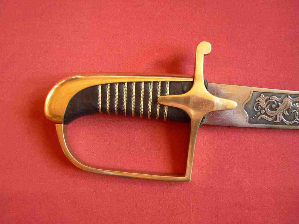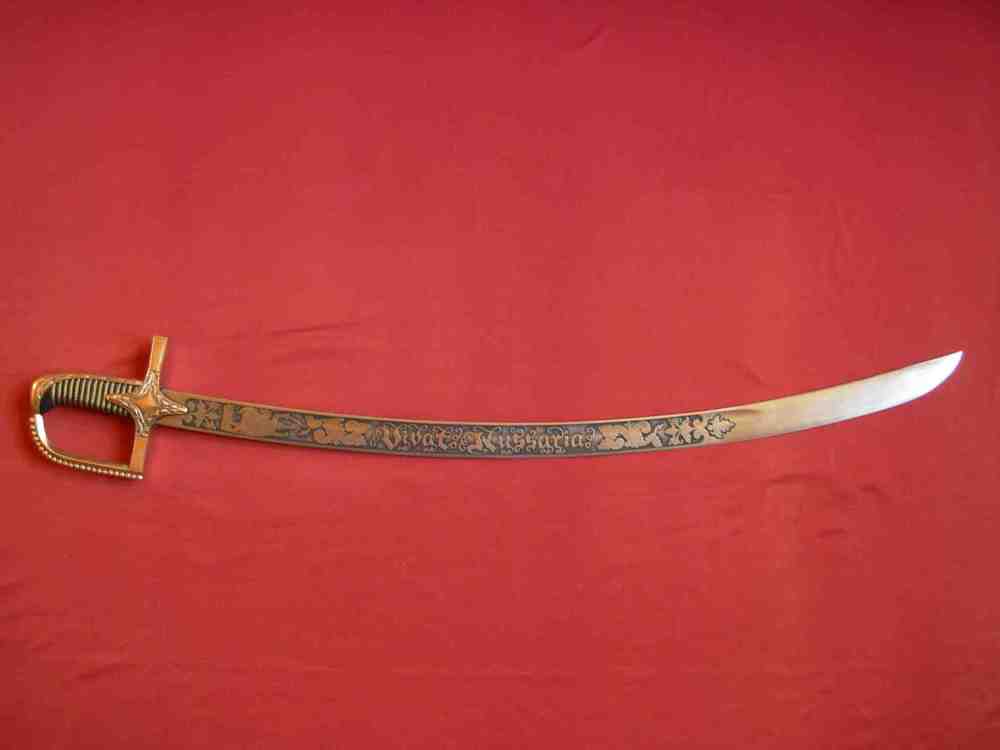 Der polnische Husaren-Säbel, des ungarischen Typs vom Jahre 1750. oftmals von den Husar-Offizieren verwendet Die ie Schneide des Säbels ist aus Stahl ausgeführt, reich verziert. Der Kreuz-Messingkorb mit Schnurrbärte, mit Ornamenten verzieren. Der Kern des Griffe ist mit silbernen Draht umwickelt.