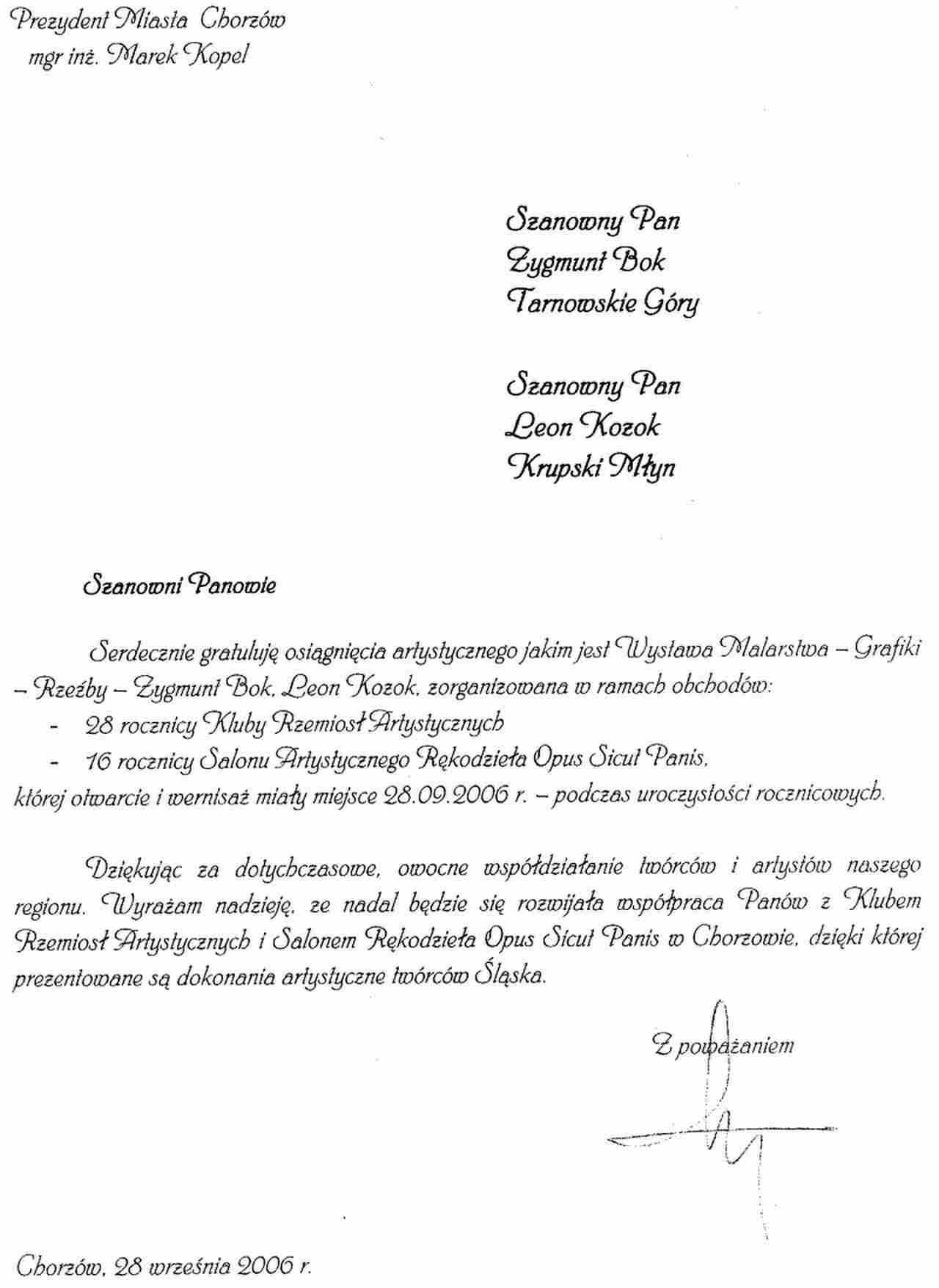 Congratulatory letters
