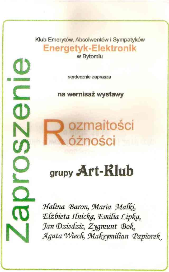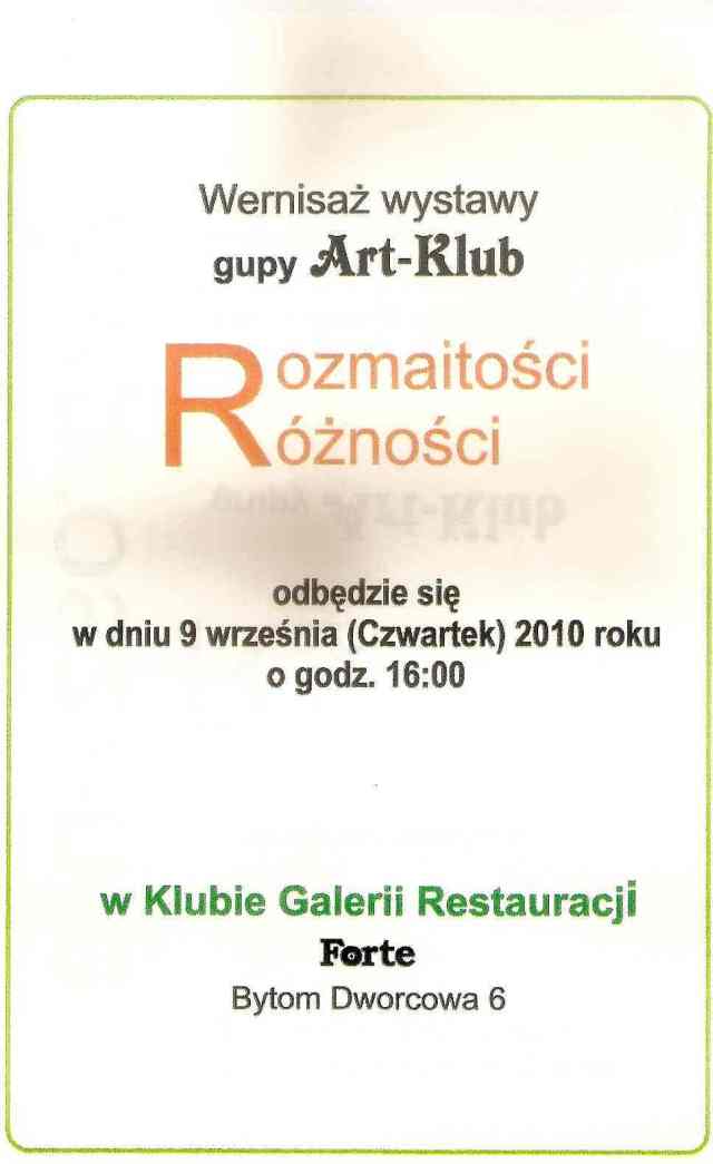 11. Collective exhibition of the "Art-Club" group. "Varieties, sundries" Gallery in the restaurant "Forte" Bytom, 9.09.2010 |